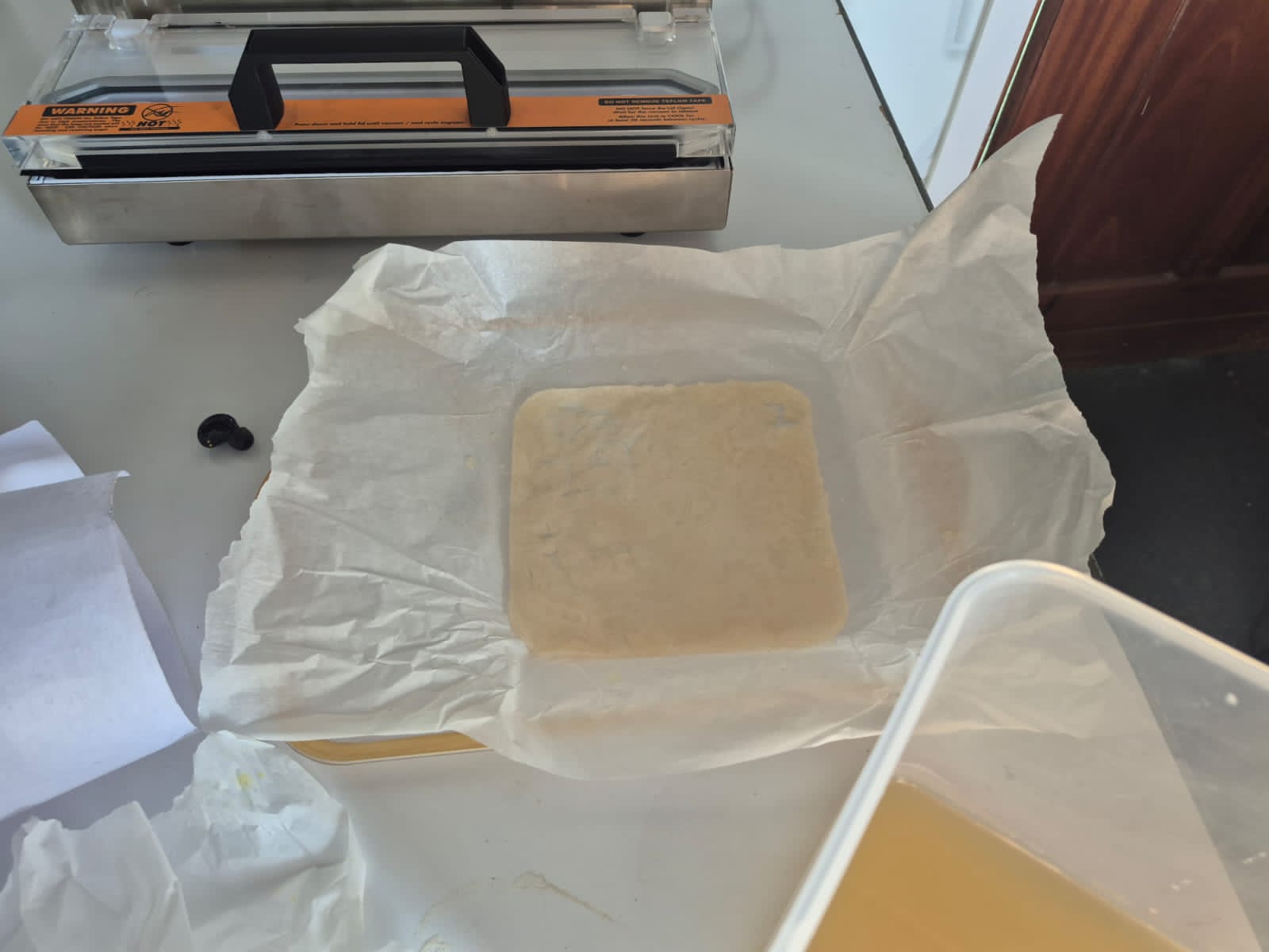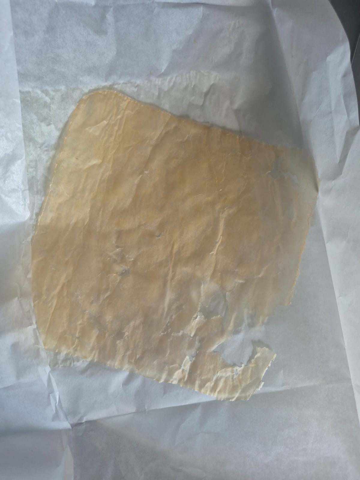 To make this plastic, I had to wait 48 hours for it to fully cure and dry. The process required patience, as the material needed enough time to solidify and reach the right texture and flexibility. After the waiting period, the final result was a durable and well-formed plastic, ready to be used for the next steps of the project.
