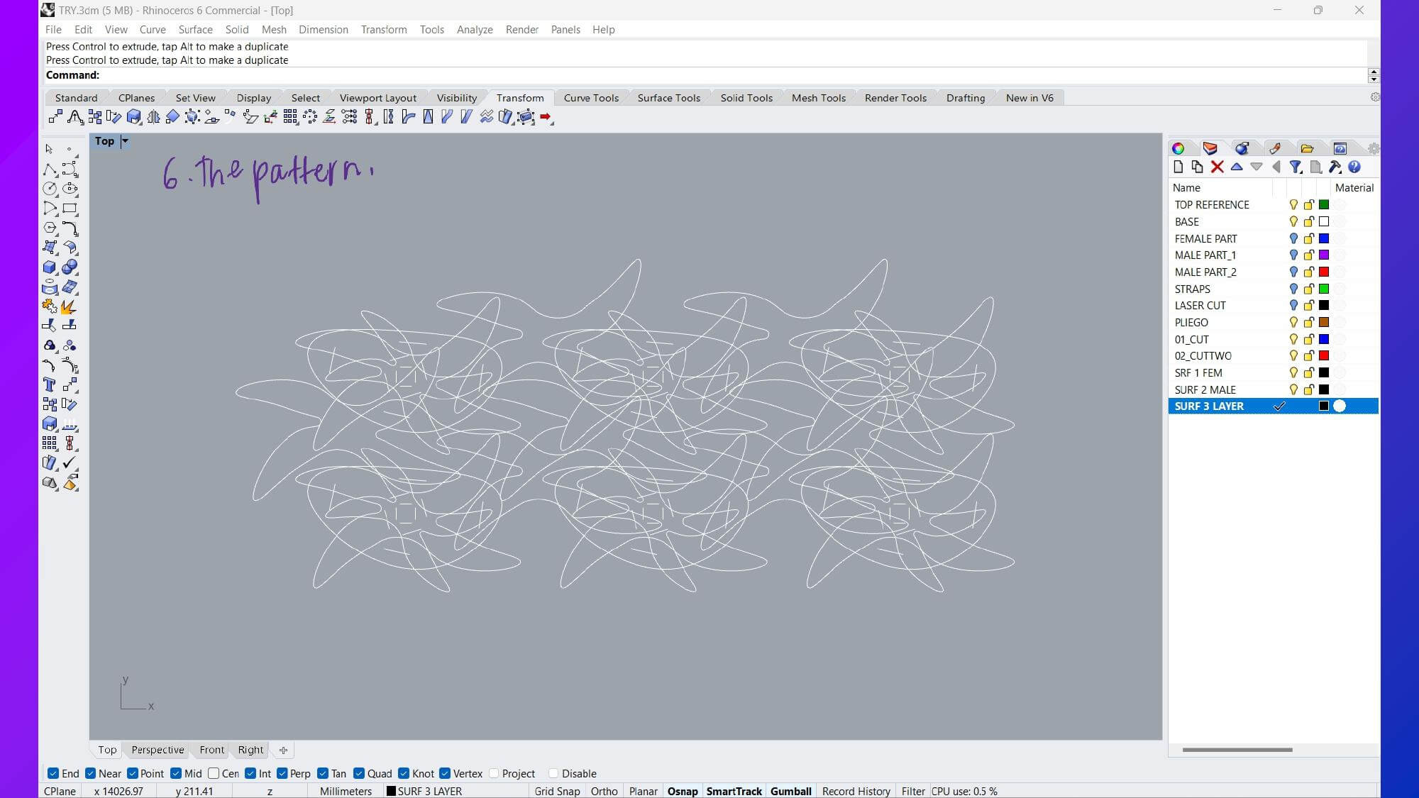 The laser cut nesting 3 was created using Rhinoceros 3D. I found there are some nesting plug-ins, I didn't use them for this project but I'm already searching to use them next time! I did my best to nest all pieces and I realized that the fabric that was left from the felt looked really cool and if I thought it before cutting it would have been a really nice piece of clothing to be 0 waste.