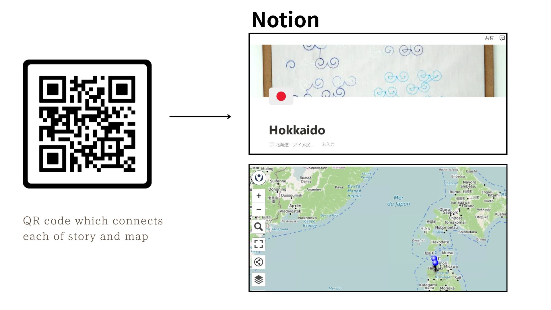 Because it was winter, I wasn’t able to actually travel to Japan’s Tohoku region, which I had originally targeted, to discover motifs firsthand. Instead, I created designs from various regions based on personal connections. I’ve marked the provisional stories on the map, so please take a look—I’d like to share my experiences with you.