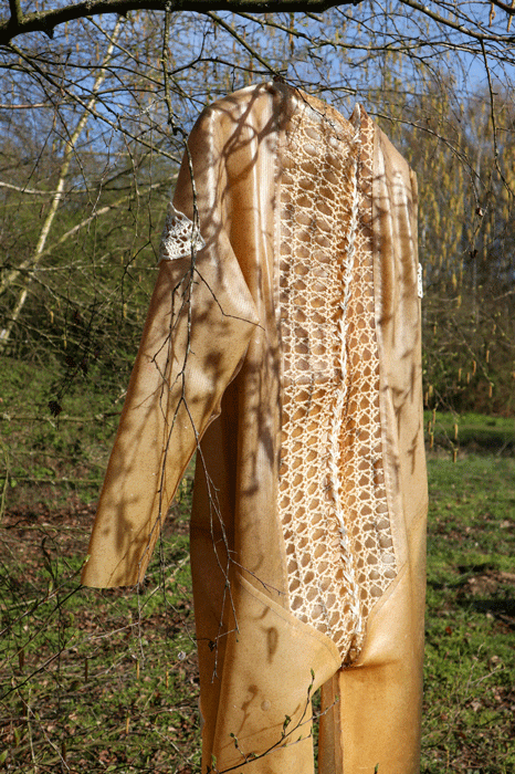 On This Skin and Beneath is an art installation that explores how emotional memory can be translated into a wearable system that supports reflection on embodied experience. Drawing on body mapping and emotional mapping methodologies, as well as the artist’s own embodied experience, the project reflects on how emotions are sensed and located across different areas of the body, and how these can be translated into visual form. The work consists of a biomaterial bodysuit embedded with sensors and connected to a responsive display. Through touch, the display is activated, revealing a series of images derived from a self-applied body mapping process.