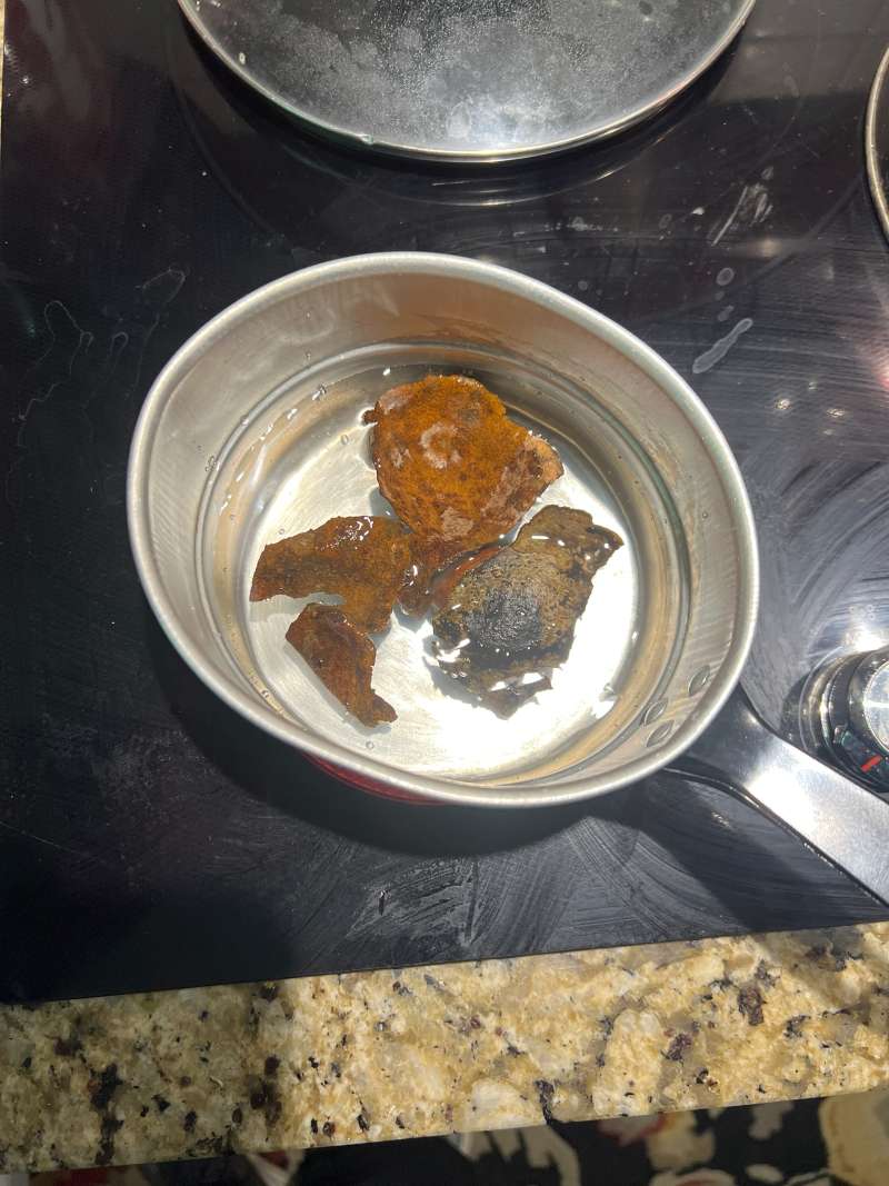 Avocado: heated 1 avocado pit with the skins of 1 avocado in a small pot with water for 90 minutes