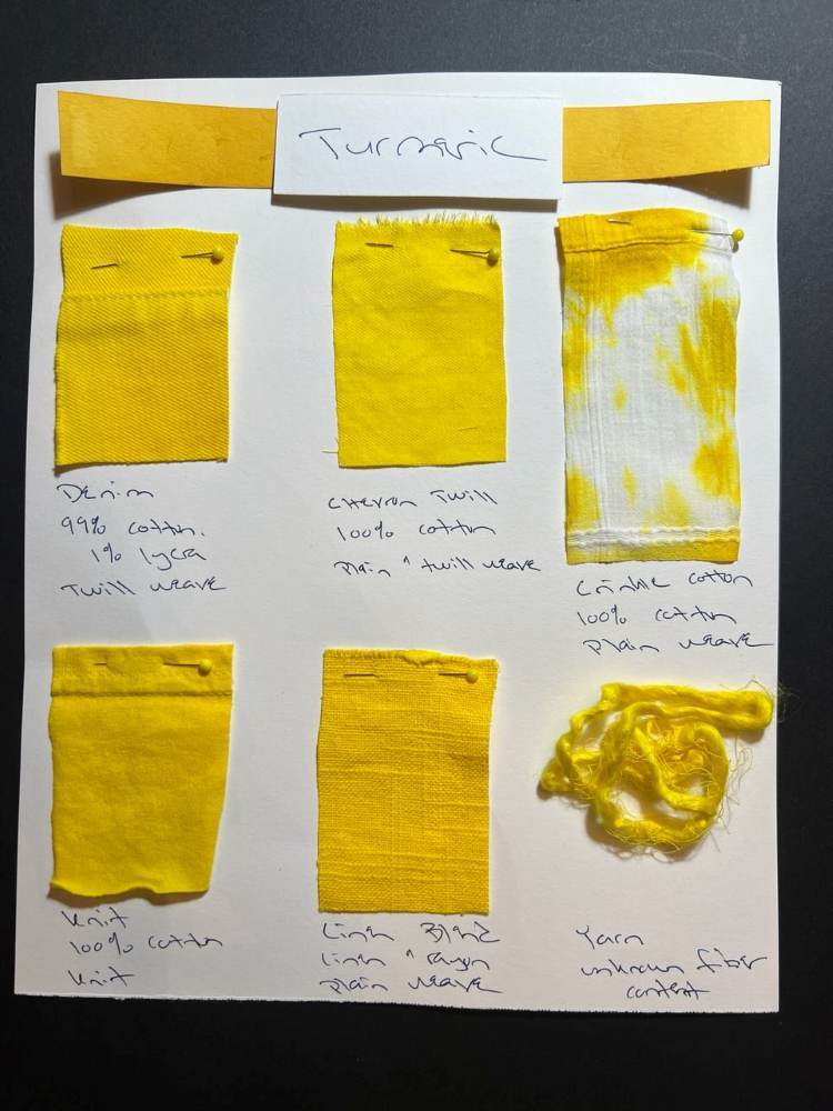 Recipe: Day 1: 6.75 ounces of tumric dye 3/4 teaspoon of alum 3/8 teaspoon soda ash