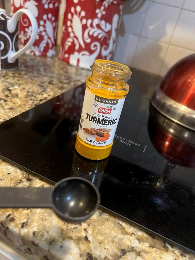 Turmeric: 1 teaspoon turmeric, 4 cups of water, plus 1 cup of white vinegar.