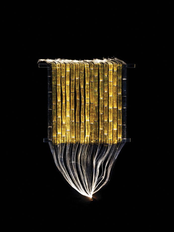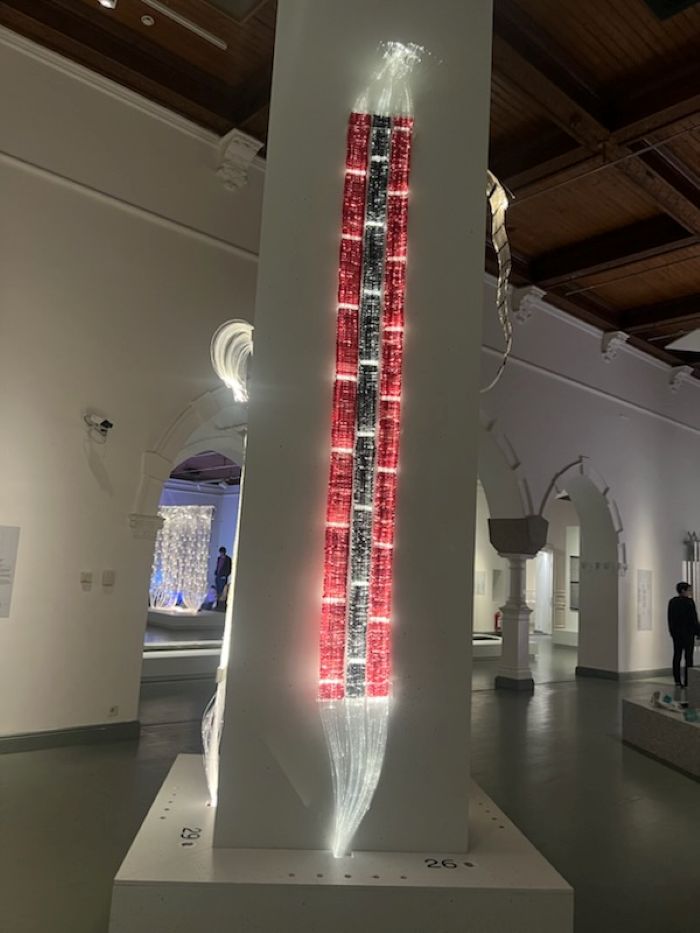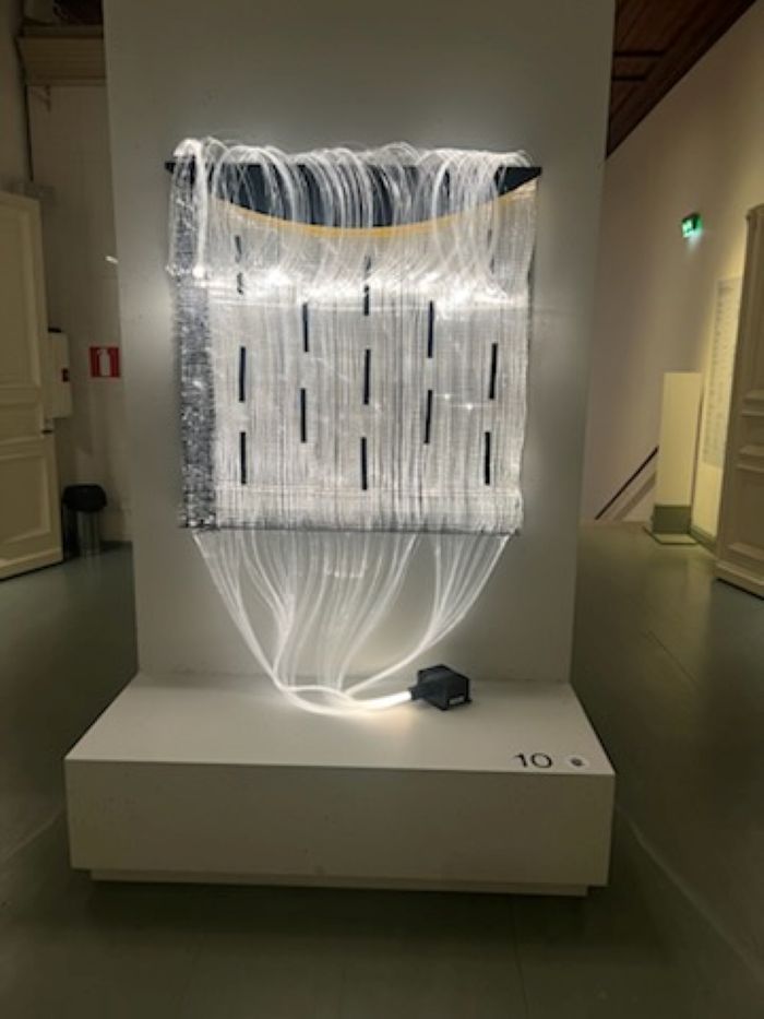 I was lucky enough to see Fiber-optic-based art pieces created by Finnish textile artist Maija Lavonen, at the “Quietly Monumental” exhibition, Architecture and Design Museum in Helsinki, Finland, in spring 2025. She was a professor at the University of Art and Design in Helsinki and was named Textile Artist of the Year in 1996.