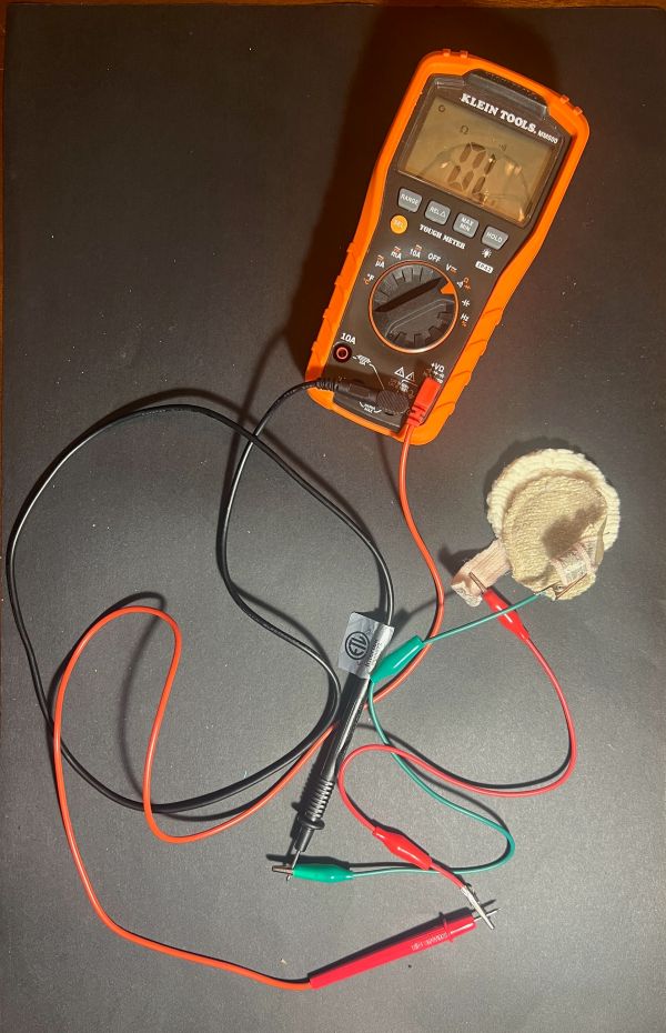 What is a multimeter? A tool used to measure voltage, current, and resistance in a circuit, as well as the continuity of a circuit. With the circuit below, I was able to press my conductive fabric button and heard a ring, meaning that I had continuity, or a complete, unbroken electrical path with very low resistance between the two test probes. This function is used to check if a wire is broken, a fuse is good, or two points in a circuit are electrically connected.