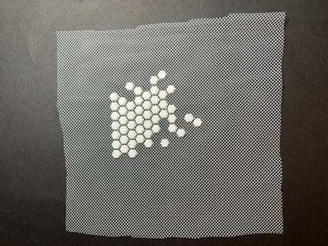 Lay mesh flat over the printed base and pull gently so it’s taut with no folds or bubbles.