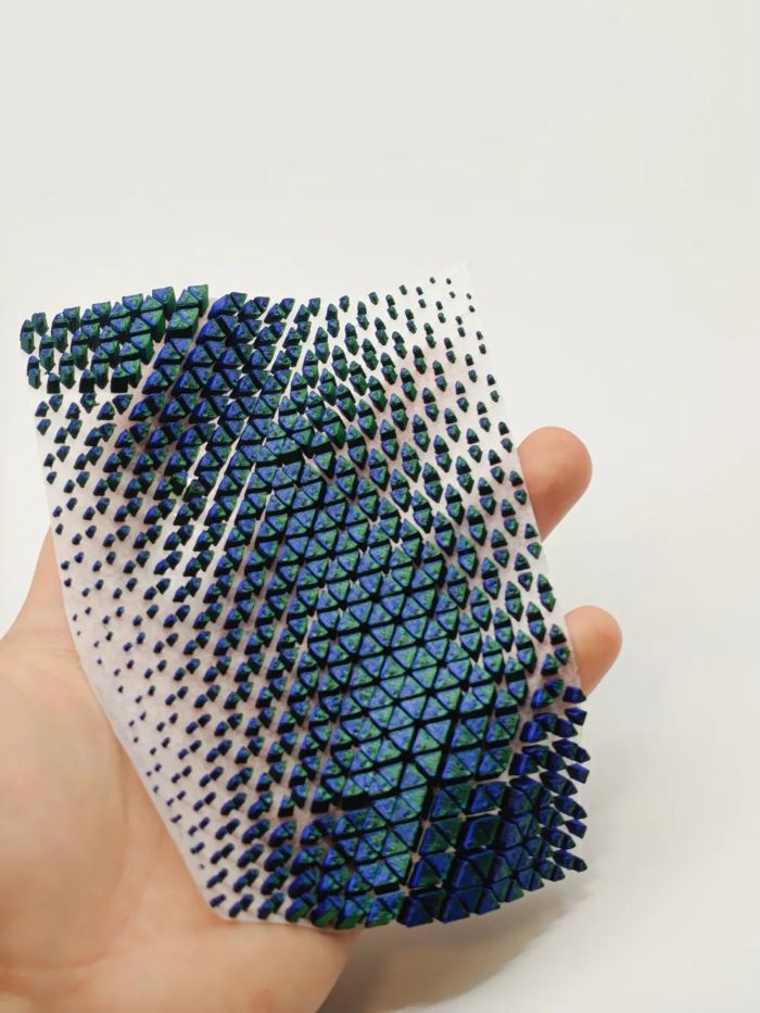 Photo and design credit: lindafriesencouture; Triangular Fabric from Makerworld linked here