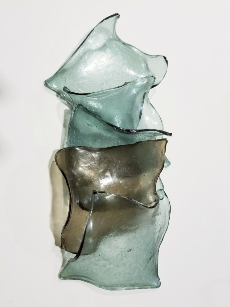 1) In a small pan, mix the agar powder with water. 2) Heat on low while stirring constantly until the mixture thickens. 3) Add glycerin & continue stirring until the texture is smooth and silky. 4) Add a drop of color...I melted some ice cream topping into this piece, perhaps not a great idea. It is what makes the bioplastic kind of sparkly.