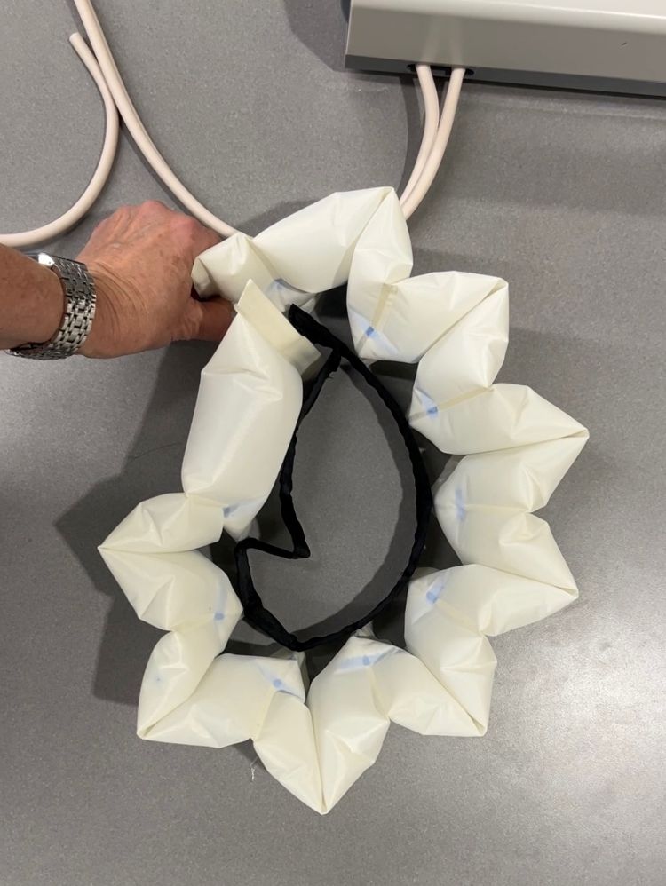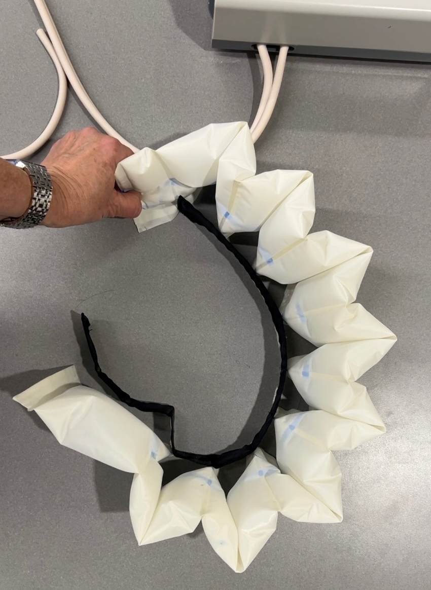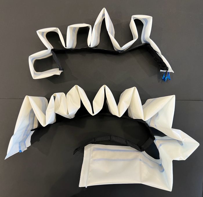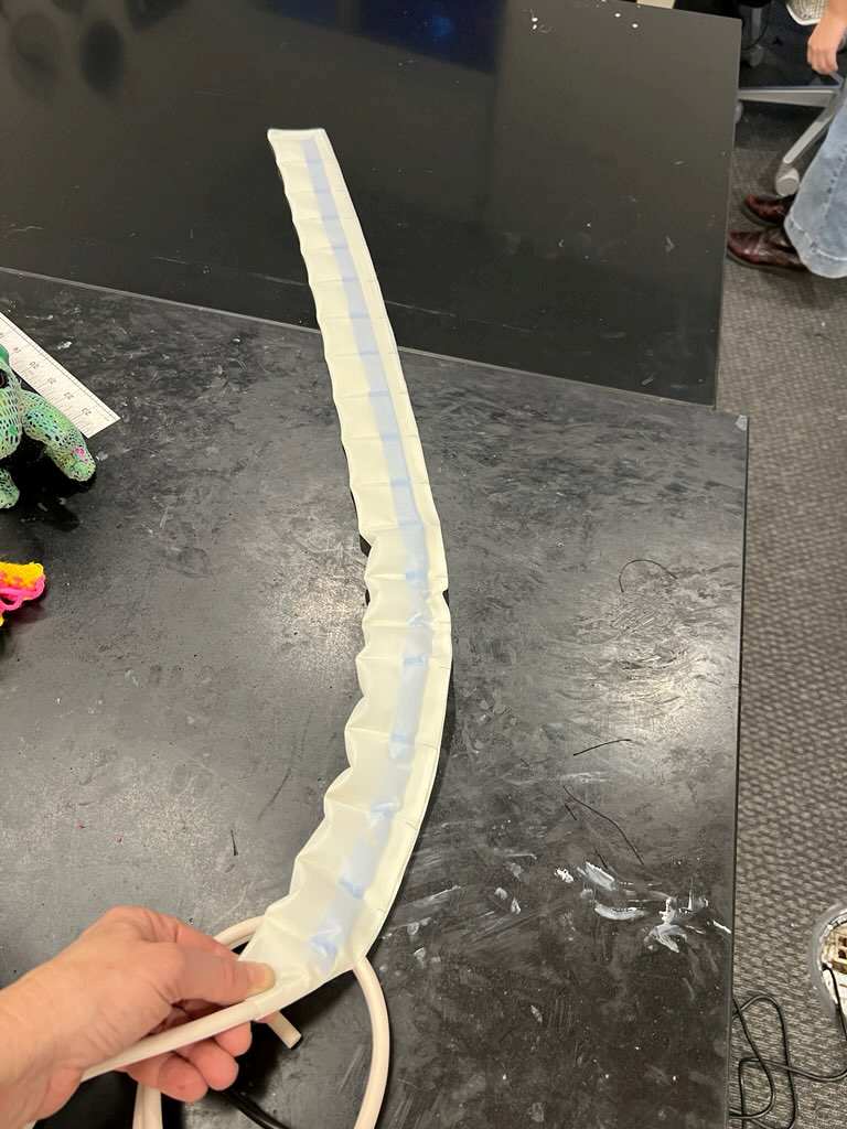 The idea with this project is that the channels will fill with air and force the band into a curled position. I am curious as to whether my fabric is flexible enough to allow for the proper expansion to make this prototype work.
