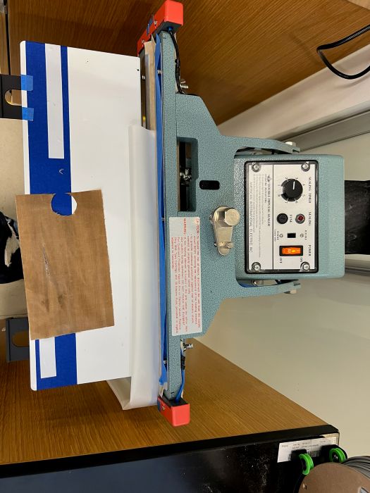 1) Heat sealer 2) Heat Sealable Coated Nylon Taffeta, in white
