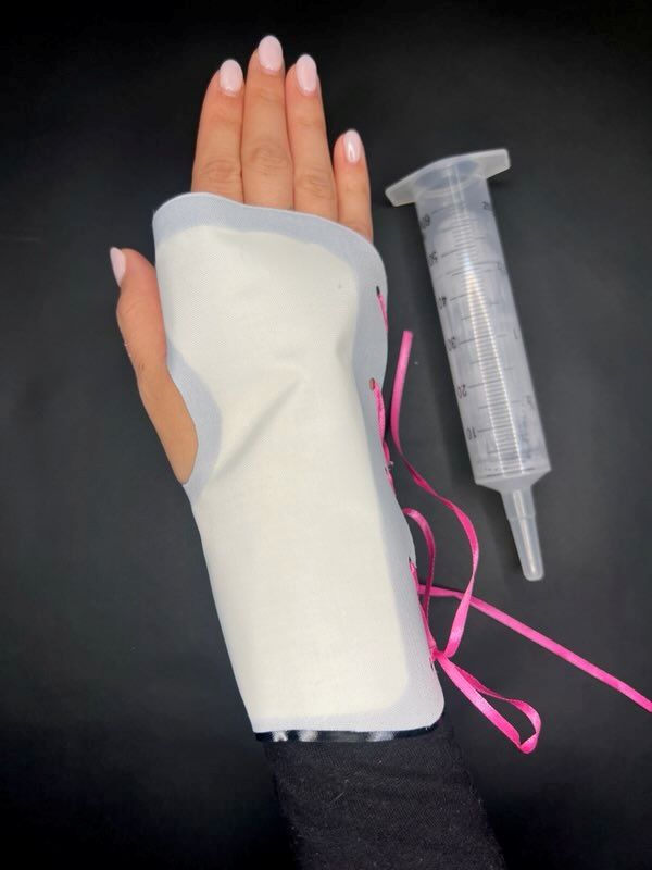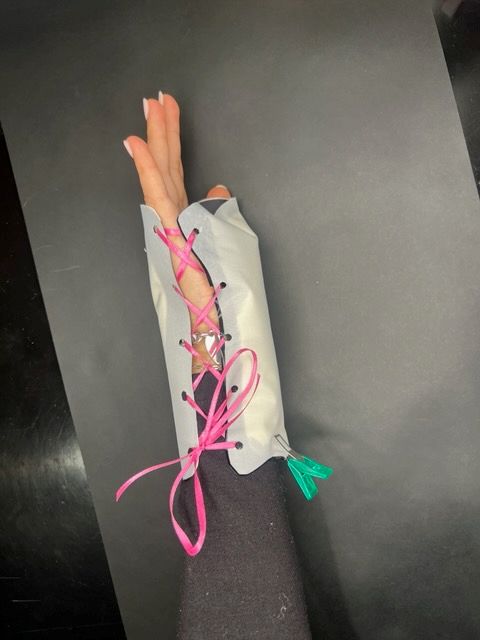 I like the idea of starting with this very basic project to learn some of the issues with pneumatics. My wonderful lab assistant Jojo Ying and I learned quite a bit and had fun with this first project. We both feel it this easy educational and confidence-building project is is a great starter project for people of all ages including kids! We both felt that the functionality of this brace was quite magical. We learned many fundamentals about working with the materials and ideas of pneumatics.