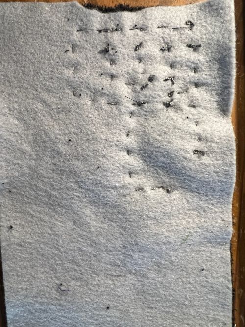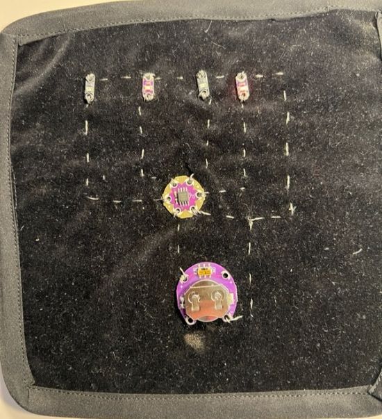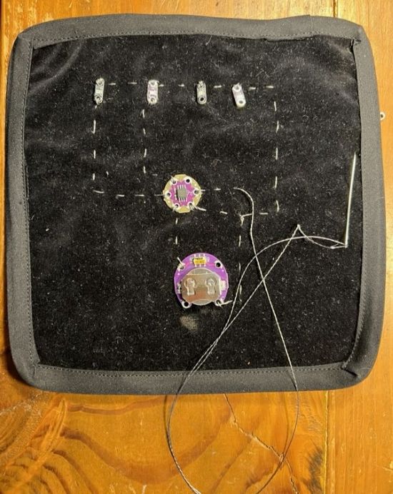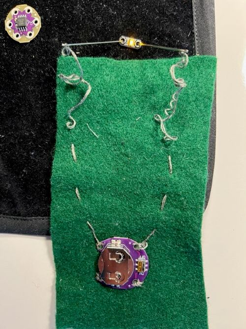 I had to do this project above twice. I could not get the first one to work. So, I ordered new Tiny Twinkle's in case the microcontroller wasn/t working, I just wasn't sure. For my second attempt, I prepared a larger piece of fabric to try to keep my positive and negative circuits separated. It worked!