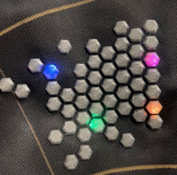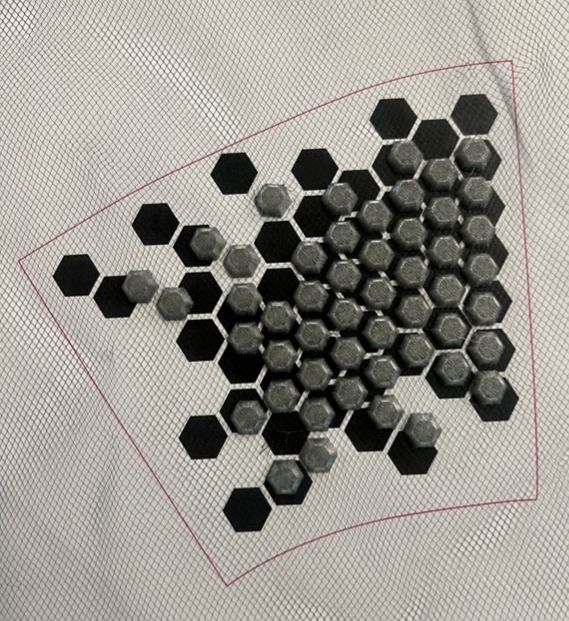 Sophie Wong has a downloadable pattern to use with the 3D printed mesh. I realize in trying to match them up that my prinitng is smalller than the paper pattern. The numbers of and overall pattern for the hexagons is the same, but my printed hexagons are physically smaller, so I made my own pattern for the placement of the neopixels.