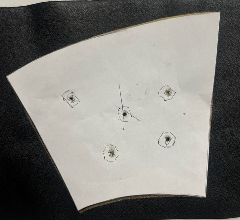 1) Make 1/4" holes in my leather to align with where I want the neopixels to go. The center point of the neopixel that lights-up is 1/4."