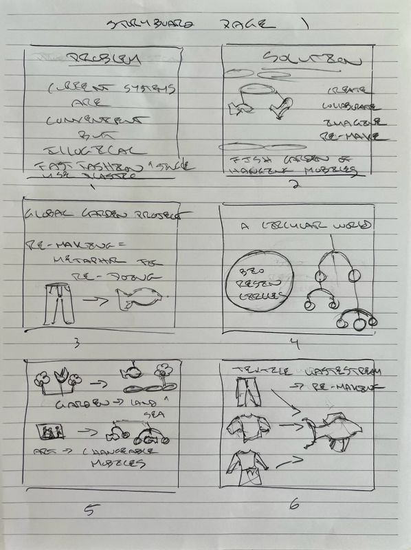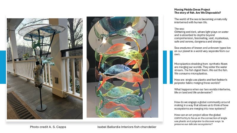In workshops, participants use old denim, plastic scraps, and bio-resin to make fish mobiles and wearable pieces that follow the path of these materials: where they started, how they travelled, and what else they could become instead of waste.