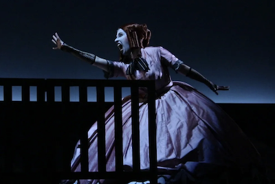 This production of The Difficulty of Crossing a Field was a stylized re-envisioning of the opera as a ghost story with the visual elements of the production responding to the libretto’s themes of distorted truth and memory.