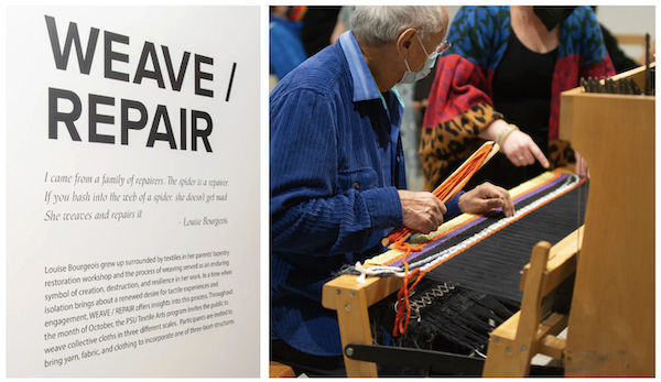 Weave/Repair was a project developed for the Jordan Schnitzer Museum of Art where participants wove a collective textile using meaningful fabric scraps and repurposed clothing. The exhibit featured looms of different scales that allowed people to explore different weaving techniques. For the event, I created a wall loom and weaving schemes that participants could interact with throughout the month. The project was featured at the first in-person reception following the pandemic in conjunction with Louise Bourgeois: What is the Shape of This Problem and became the catalyst for the Weaving Data exhibition that followed in the winter of 2023.