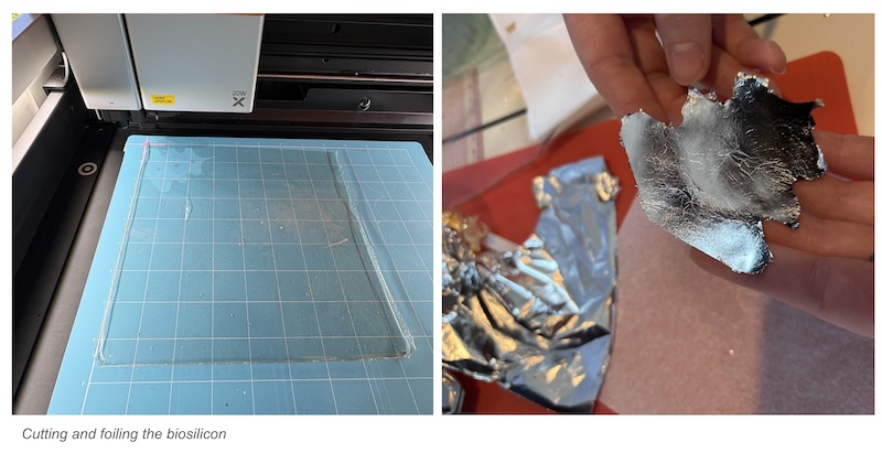 We then used the Xtool M1 to cut the biosilicon tattoo with the blad tool. Once cut, we applied the foil and used double sided tape to secure it over the NeoPixels: