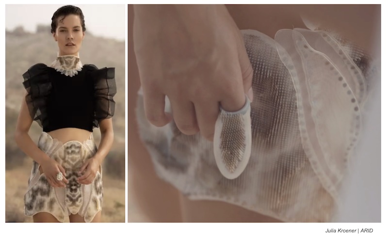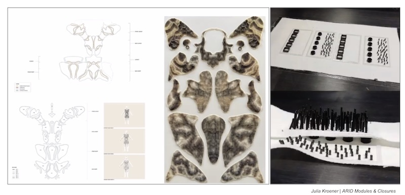 I was also very inspired by the process that Julia Kroener shared for creating the garments from her ARID collection during the Computational Couture.. I was specifically interested in the way she used CLO3D to sustainably prototype the modular patterns and the extensive research she did around embedding 3D printed closures into the fabrics to enable secure methods of attachment.