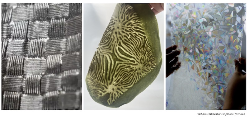 This brings me to Week 7 where I was very inspired by Cecilia Raspanti’s presentation and the material properties that Barbara Rakovska was able to achieve with gelatin and algae based bioplastics. In my own experimentations following this lecture, I have explored creating textures by skimming bioplastics over etched surfaces and embedding them into fabric using 3D-printed molds.