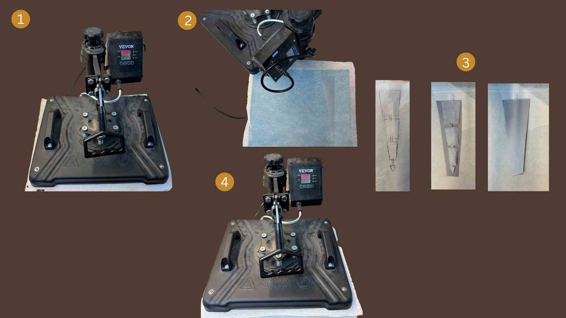 | Pressing & Cutting | Heat press vinyl • Baking paper • Scissors |