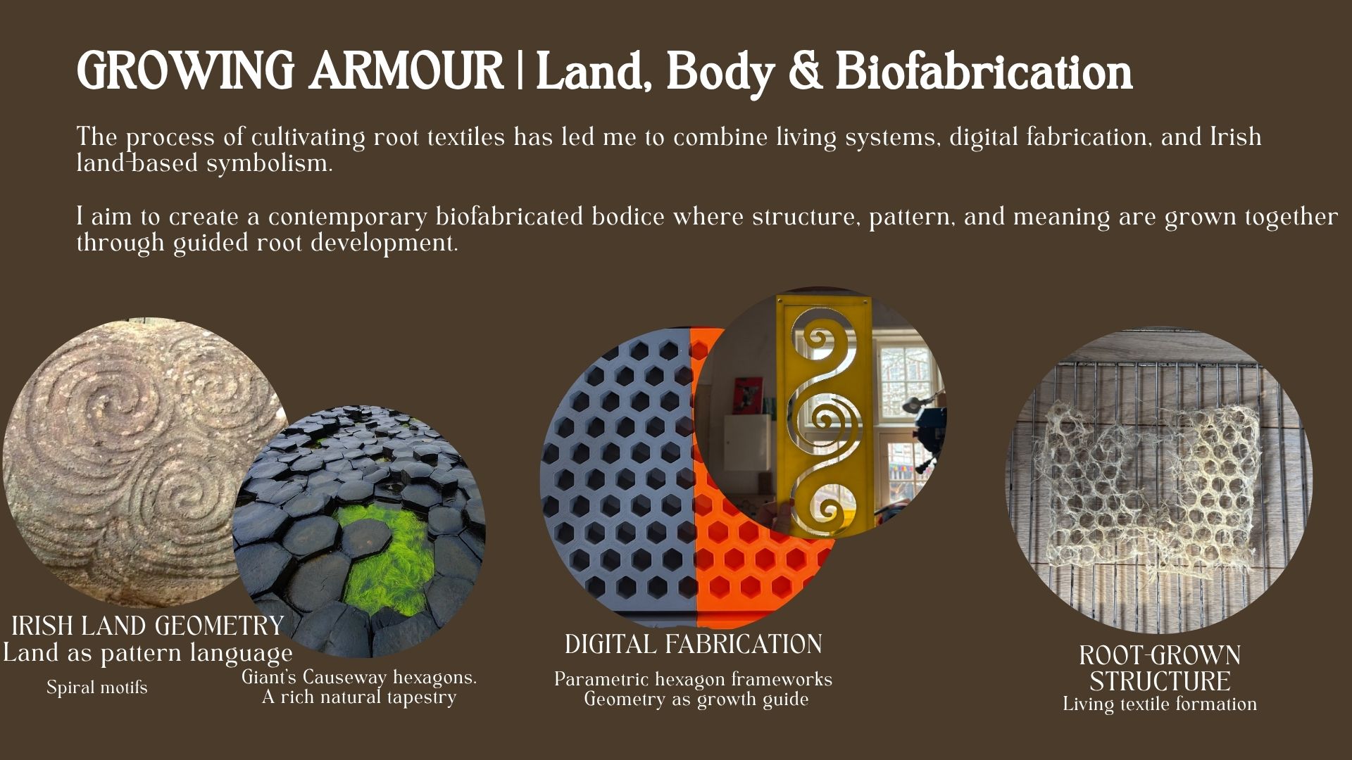 - Measuring the bio- electrons in wheatgrass roots, translating this into a vibration motor. For people then to touch the grounding mat (mat made of wheatgrass) and for people to "feel the ground" while inside walls.