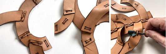 After the first disappointing assembly, I chose to work with a large leather scrap I had kept in my basement for the ears.