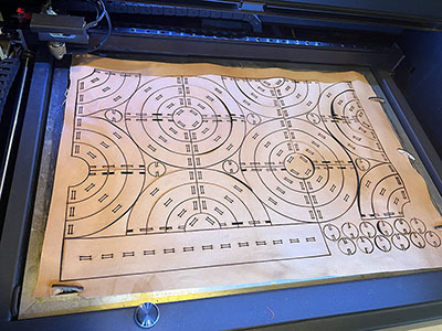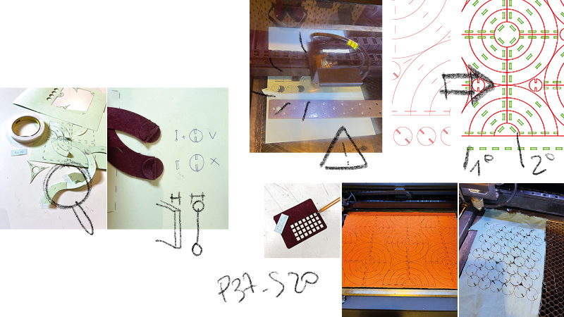 I cut 3 colors of felt; it’s very easy and fast. (S20 - P37) The laser lift moves the parts. So I created a layer with the notches and another with the shapes to limit the inconvenience. The laser lift moves the parts. So I created a layer with the notches and another with the shapes to limit the inconvenience.