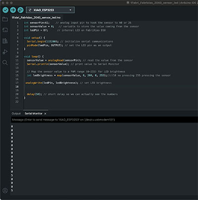 int ledBrightness = map(sensorValue, 0, 200, 0, 255);////10 no pressing 255 pressing the sensor