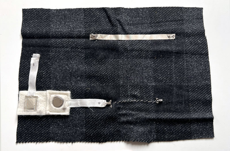 - Cut two pieces of conductive fabric and complete them with conductive tape.