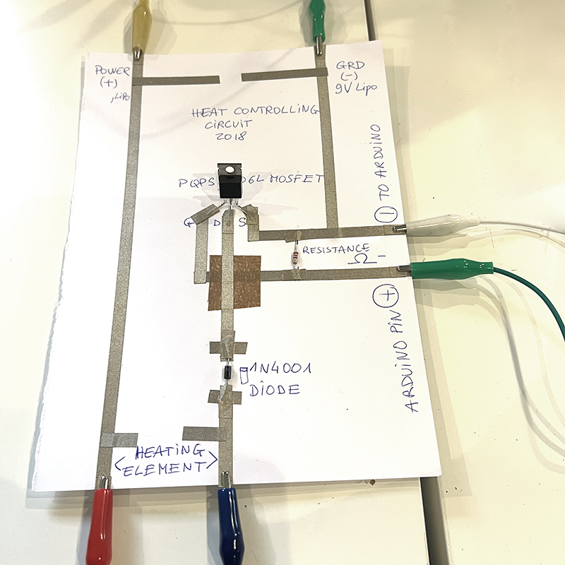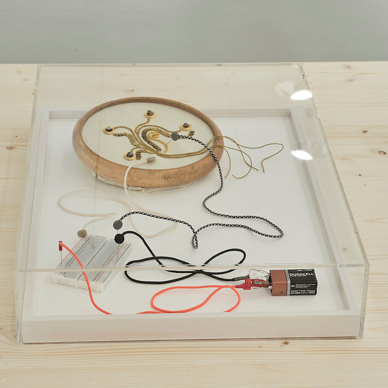 Here you have the example of the circuit that worked best! It’s just a circular hand stitch on poppeline.
