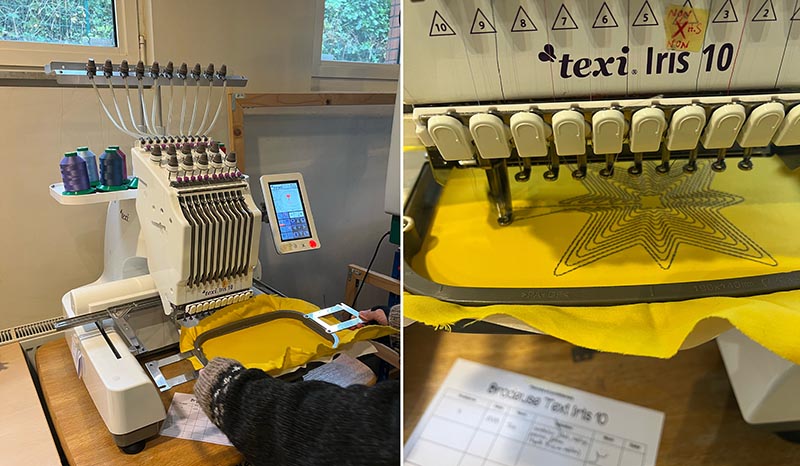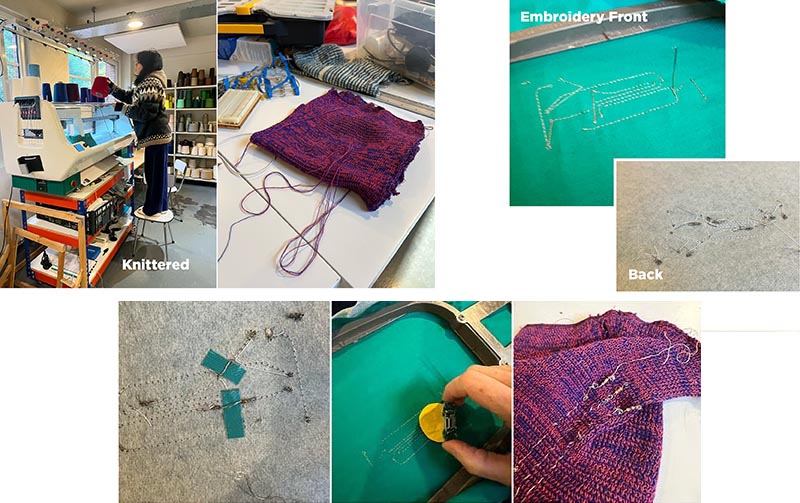 Stéphanie programmed the Knittered to obtain a rectangle allowing me to test my idea. I could only attend the manipulation because this machine and its program is very complicated. This allows me to see a little better its potential and its usability.