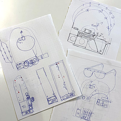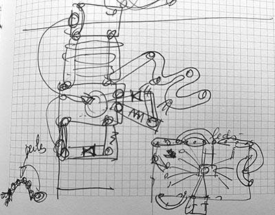 (Left) a sample page from our pictorial mapping our various explorations of core spinning.