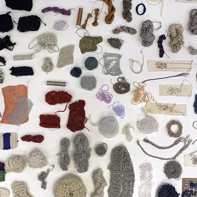 Electronic Needlework shows three framed historic plates from the Encyclopédie ou Dictionnaire raisonné des sciences, des arts et des métiers describing and picturing “Brodeur” (embroiderer), and three object frames with diverse electronic textile needlework materials, tools, and application samples.*