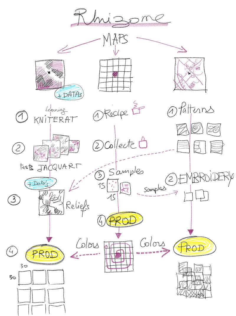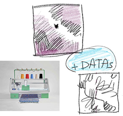 1- With the Kniterate, using these databases to present the territory around the GreenFabric in jacquard, and once the machine and software are in place, using the data as a source of code and develop in-depth tests/, making reliefs.1