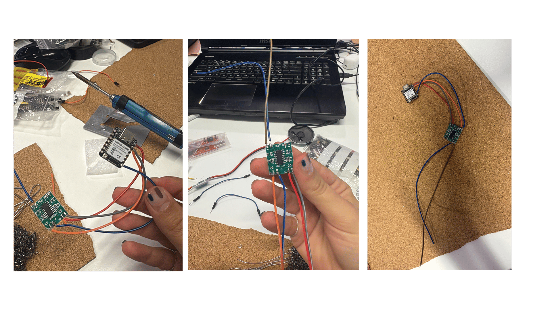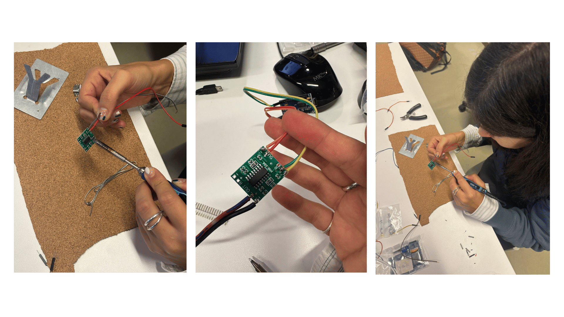 This week, we went deeper into electronics and wearables, experimenting with an ATtiny microcontroller and various actuators, following Lisa’s presentation as our main guide.