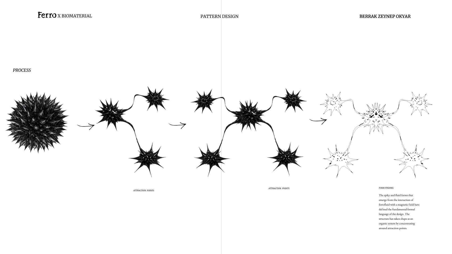The spiky and fluid forms that emerge from the interaction of ferrofluid with a magnetic field have defined the fundamental formal language of the design.