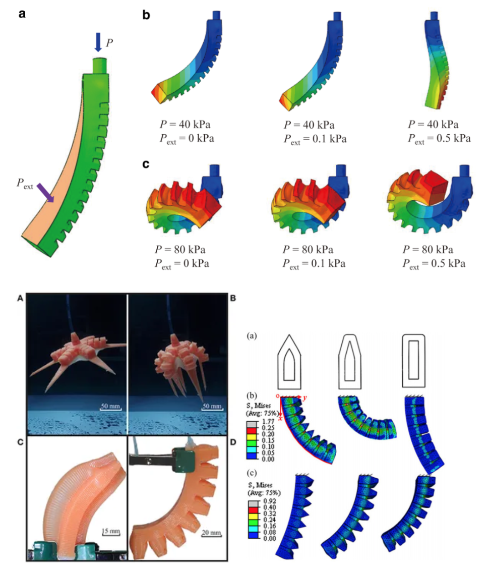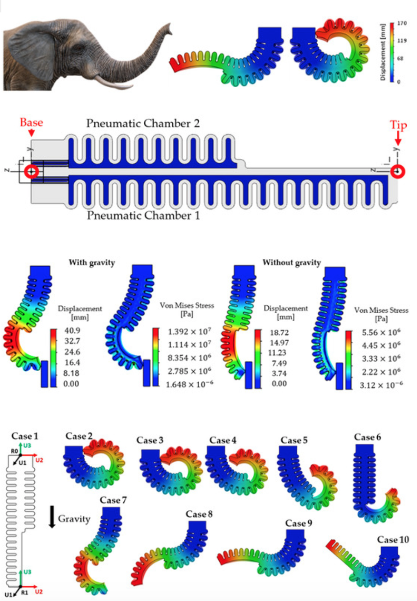 Pneumatic & Soft Actuators - Pneumatic Soft Robot Image - Soft Actuator Inspired by Elephant Trunk - Pneu-Net Soft Actuators 3D Deformations - 3D Printed Soft Robots – Hexapus & Pneu-net Actuator - FEA Model of Soft Robotic Actuator - Soft Robot Flower - PneuBots – Modular Inflatables YouTube