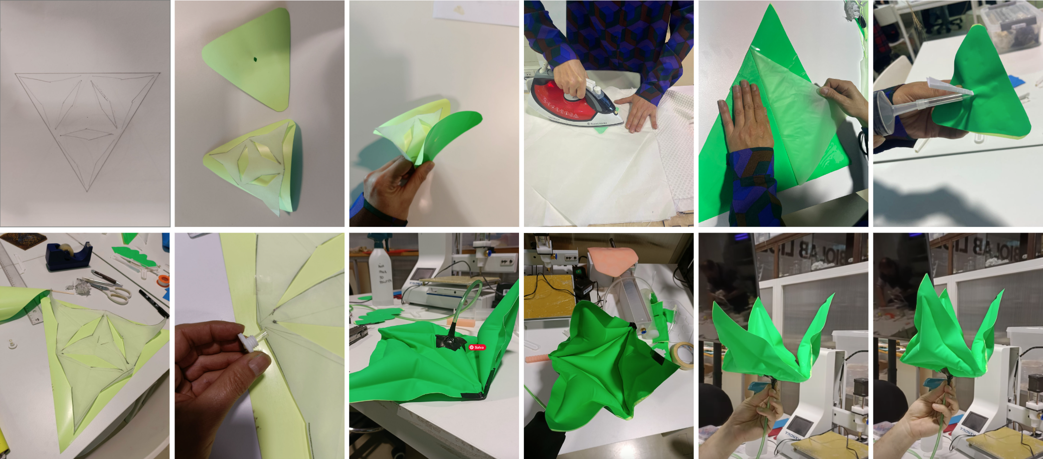 - [ ] Experiment with different materials, such as silicone, 3d printing, parchment paper, thermoadesive vynil, TPU fabrics, bioplastic, document your achievements and unexpected outcomes