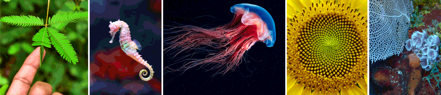 Biomimetics & Biological Inspiration - Overview of Biological Actuation Motifs - Overview of Plant Structural/Functional Motifs - Soft Actuators Inspired by Plant Systems - Ren, Luquan et al., Biology and Bioinspiration of Soft Robotics: Actuation, Sensing, and System Integration, iScience, 24(9), 103075. Full Text - Mimosa pudica – Seismonastic Movement YouTube - Fibonacci Solar Biomimicry – Sunflower - Sea Iridescent Jellyfish Inspiration - Seahorses – Prehensile Tail - Corals – Biomimetic Structures
