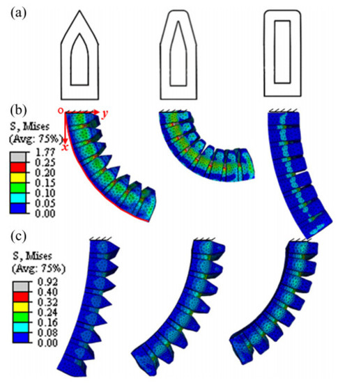 FEA model of a soft robotic actuator compared to experiment. (a) Schematic of the chamber shape, (b) The maximum bending angles of the three actuators when deflated, (c) The FEA results of the three actuators at pressurization state (20 kPa).Open Access