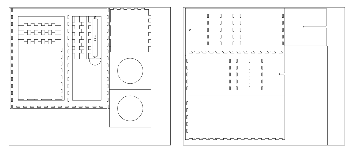 Draft and testing process, prototiping, laser cut model, build model, demo test.