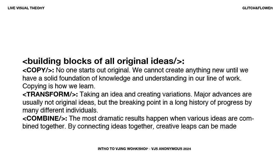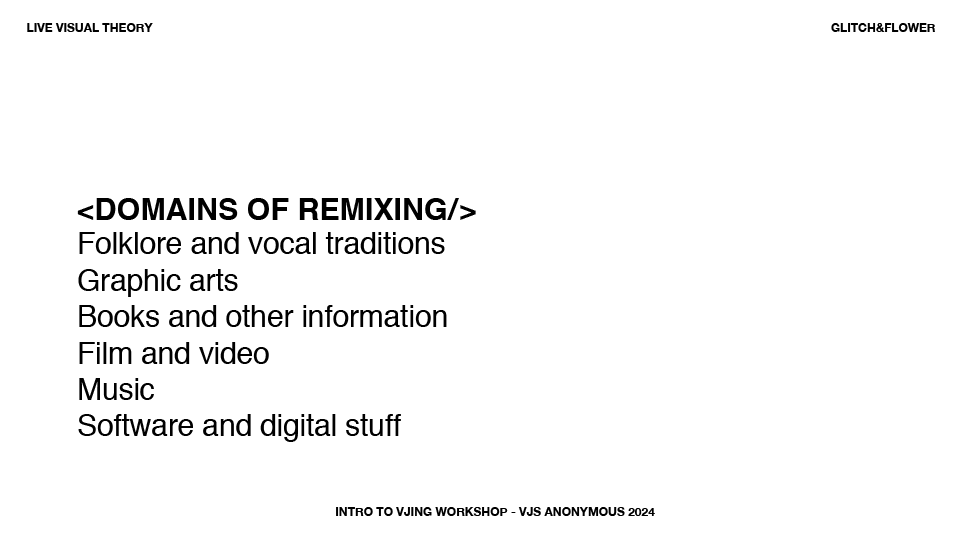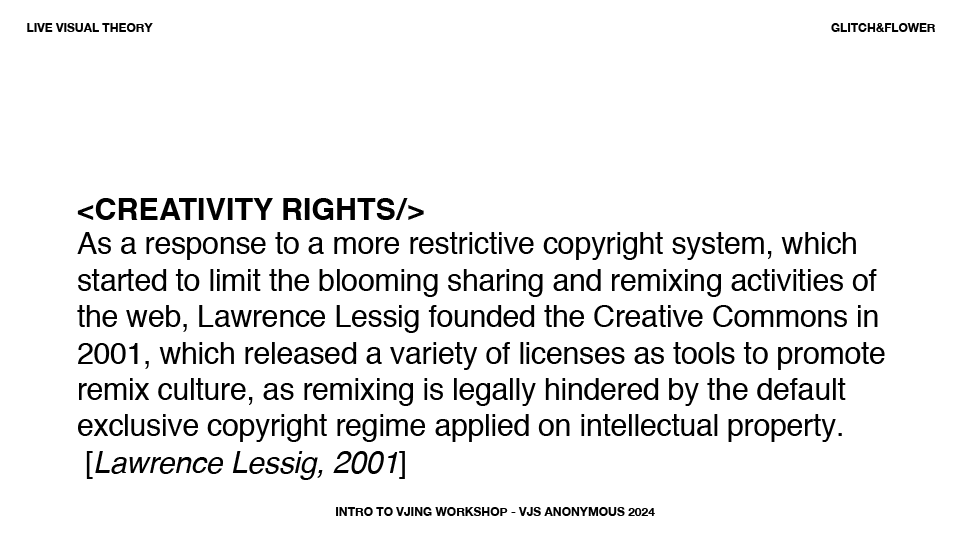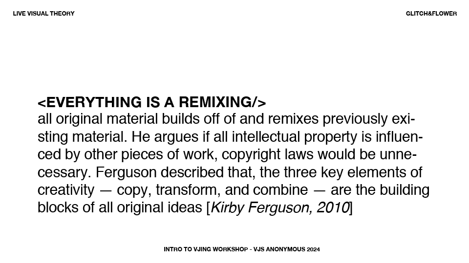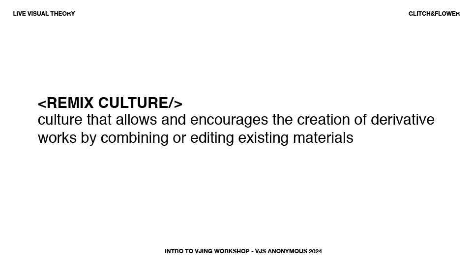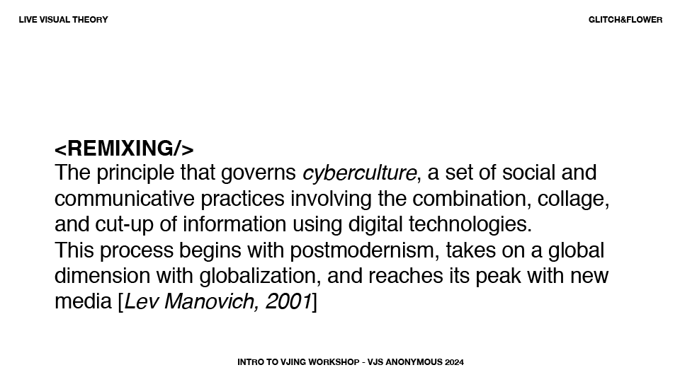 Some Slides from my lecture for Intro to VJ Workshop, VJS ANONYMOUS 2024 [LIVE VISUAL THEORY/> GLITCH&FLOWER(Carlotta Premazzi)]