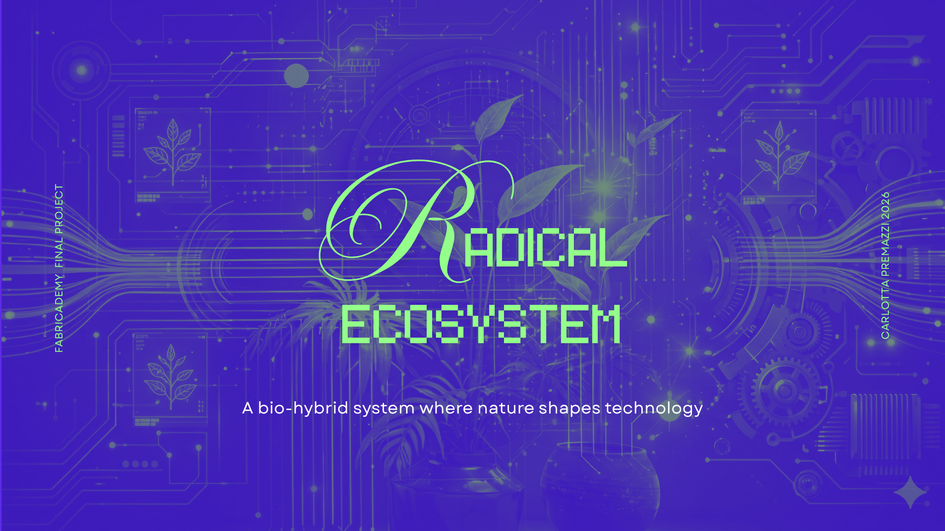 Radical EcoSystem is an experimental bio-hybrid installation exploring how plant activity can influence the behaviour of technological systems. In many contemporary technological environments, living organisms are monitored, measured, and controlled through sensors and automated infrastructures. This project investigates an alternative paradigm: a system in which plant signals actively shape the behaviour of artificial components. The installation combines plant sensing, human physiological input, and soft robotic actuation to create a responsive ecosystem in which movement, light, and sound emerge from biological signals. These transformations make otherwise invisible biological processes perceptible through dynamic sensory expressions. A pneumatic artificial flower responds to plant activity, while human presence introduces additional variations through physiological input. Rather than functioning as a simple interface between human and nature, the installation behaves as a small technological ecosystem where plant signals influence artificial behaviours and human presence perturbs the system dynamics. By shifting agency away from purely human control, Radical Signals explores how living organisms can become active participants in technological environments, proposing a more-than-human perspective on interaction and system design.