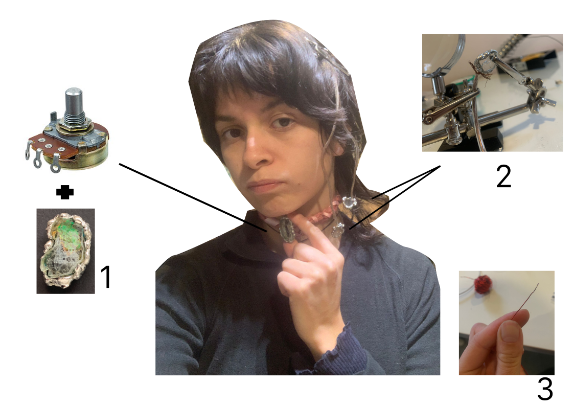 I wanted to include my buttons as the switch in hair extension + have the potentiometer as a button on a choker necklace¶