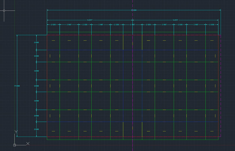 I measured my pattern and drew it up in CAD, placing marks at the edges of the pattern transition to get a sense of which cutting position would line up best with the pattern.