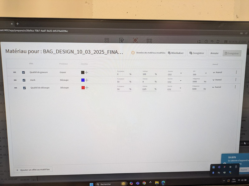In the lab, with my material purchased, I then cut a test strip to the length of my laser bed (29" long x 1.5" tall).