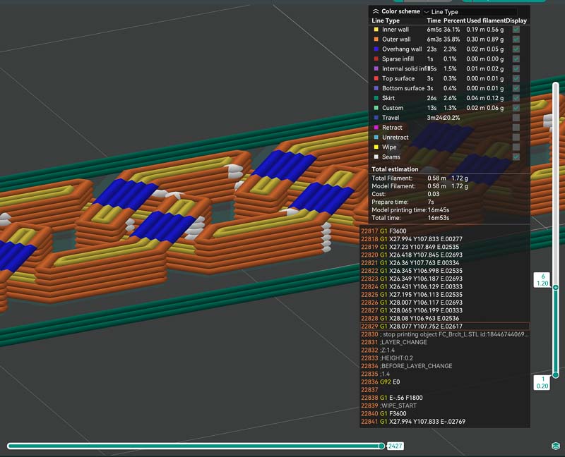First I downloaded my chain as an .STL and pulled it into Orca Slicer.