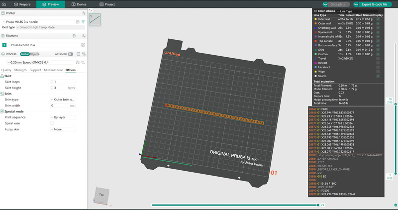 Once the file looked good I exported my G-Code to an SD card.