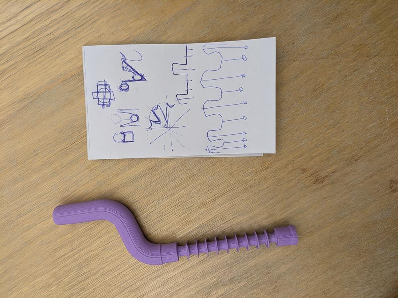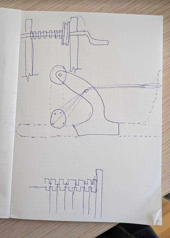 The next day I tried modelling a new crank. But after assessing it, Annie suggested it might be too brittle if we 3D printed it, because the parts would be too thin to hold so much tension.
